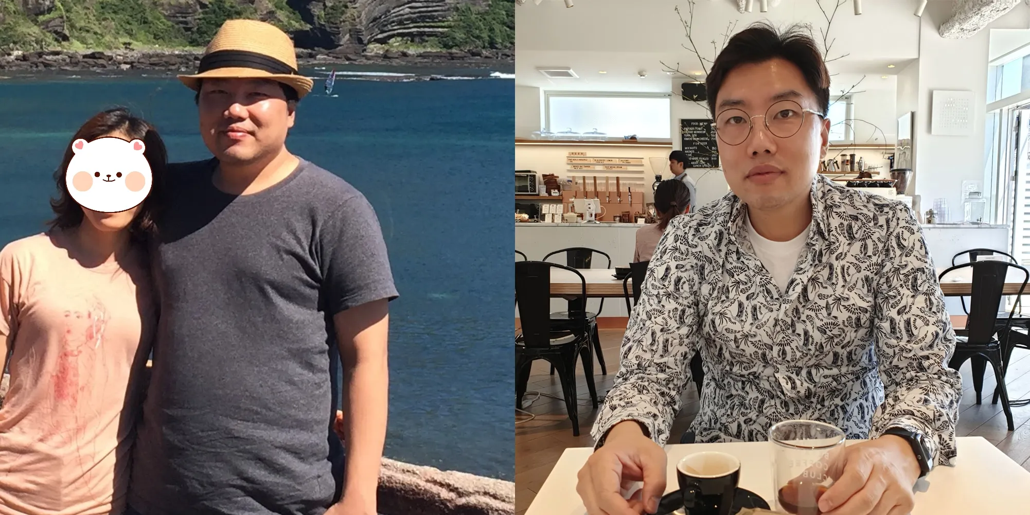 (왼)38년 비만 외길 인생이었던 3년 전과 (오른쪽) 현재 75kg 2년째 유지 중
