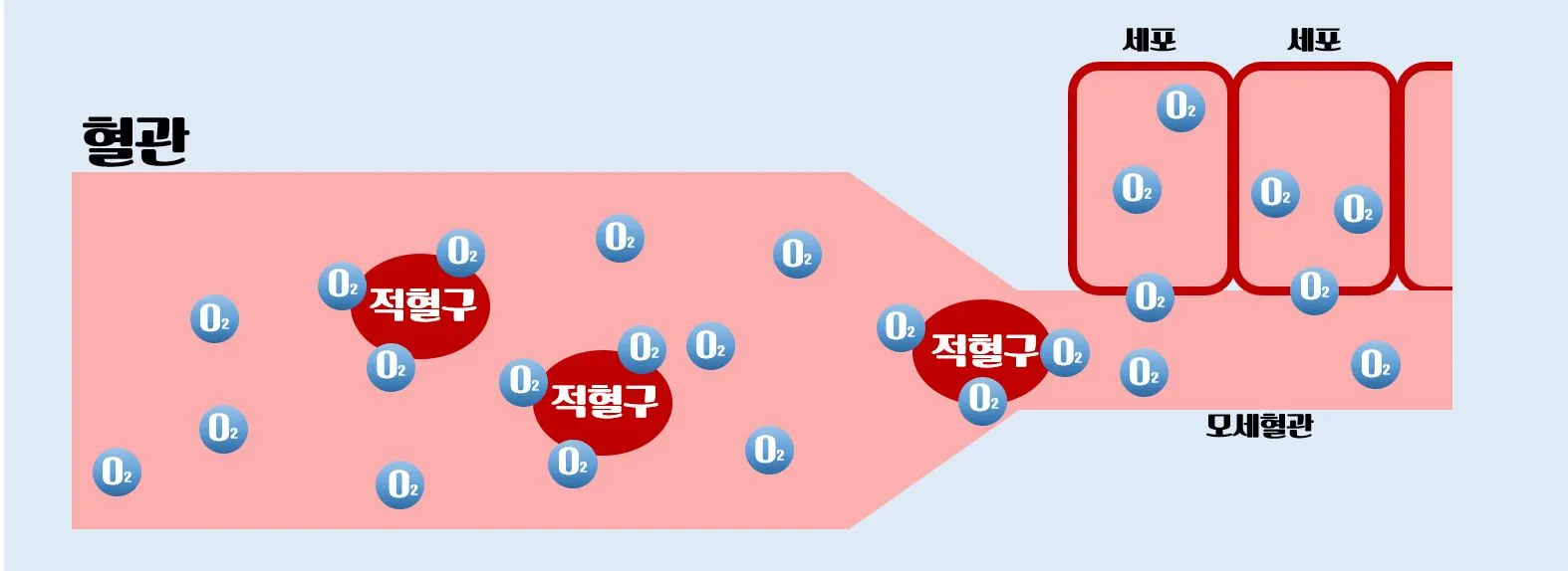 결합형 산소(일반 호흡 시) - 주로 헤모글로빈에 의한 산소 운반